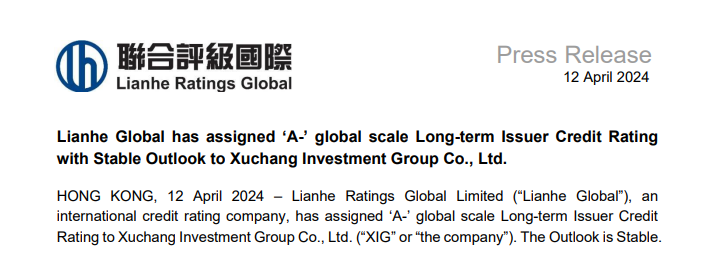 4月12日,經(jīng)聯(lián)合評級國際有限公司綜合評定,許昌市投資集團有限公司(以下簡稱“許昌投資集團”)成功獲得聯(lián)合國際授予的“A-”級國際長期發(fā)行人評級,展望穩(wěn)定,這是許昌首家實現(xiàn)國際評級的國企,也是全省地市地方國企中最高國際信用評級,標志著集團公司繼2021年獲評AAA境內(nèi)主體信用評級后又一重要里程碑!這不僅是對許昌投資集團綜合實力和未來發(fā)展?jié)摿Φ膰H認可,也是對許昌市在全球資本市場地位的有力提升。