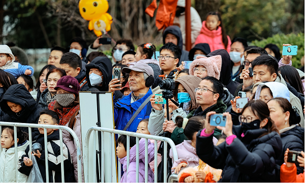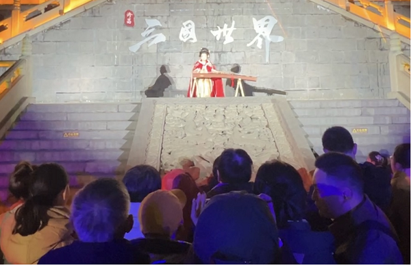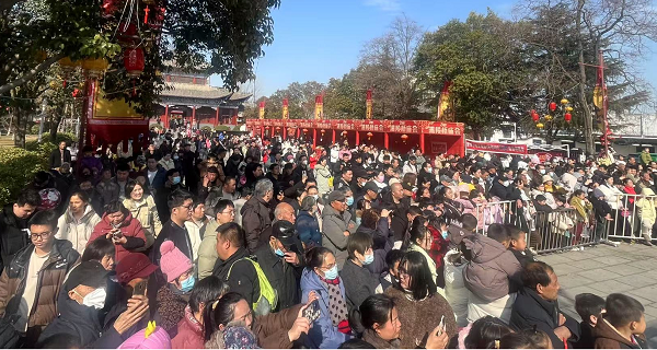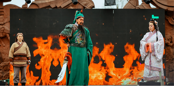 景區(qū)以三國(guó)文化為主題,打造了文廟武廟結(jié)合的行進(jìn)式光影秀《春秋・憶夢(mèng)》,通過(guò)沉浸式演藝和建筑投影等創(chuàng)新形式,生動(dòng)再現(xiàn)了關(guān)云長(zhǎng)的英雄故事,為游客獻(xiàn)上了一場(chǎng)震撼心靈的文化盛宴。同時(shí),景區(qū)還開展了多場(chǎng)《忠義千秋》情景劇演出,全新包裝的演員陣容和重新打造的演出內(nèi)容,吸引了眾多游客駐足觀看,贏得了陣陣掌聲。此外,夜間的古風(fēng)舞蹈、傳統(tǒng)器樂演奏及民俗文化表演,更是讓游客感受到了濃濃的新春年味,場(chǎng)場(chǎng)演出人氣爆滿。