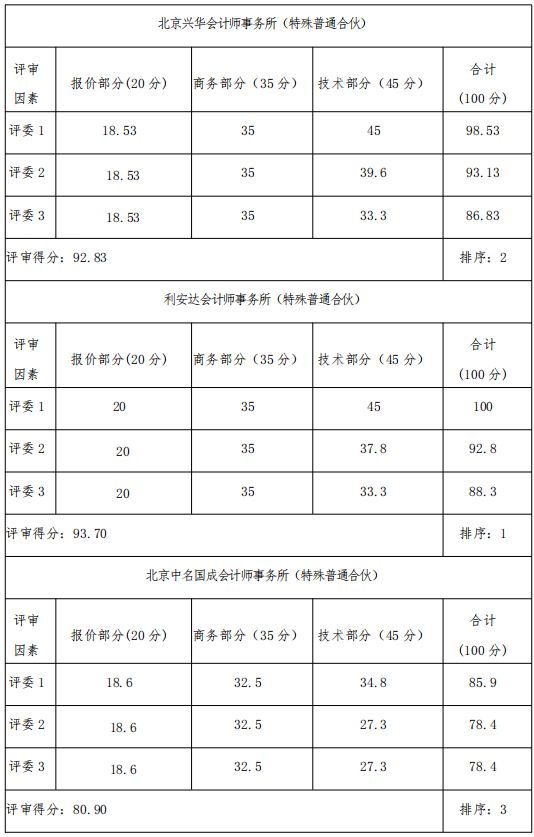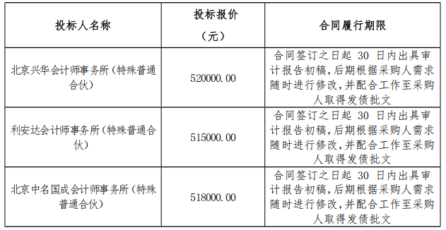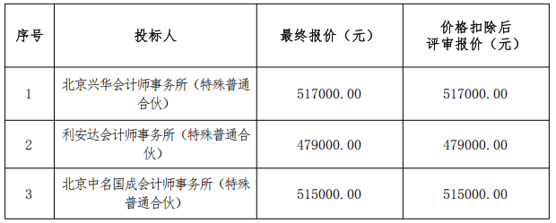 (一)中標候選人名稱:北京中名國成會計師事務所(特殊普通合伙)